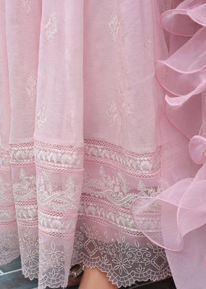 Description: Elevate your family gatherings in this stunning pink pishwas ensemble. With its sophisticated embroidery and intricate stitching details, this outfit exudes elegance and style. The addition of a frill organza dupatta makes it a true masterpiece that will leave a lasting impression.