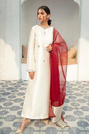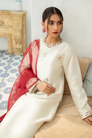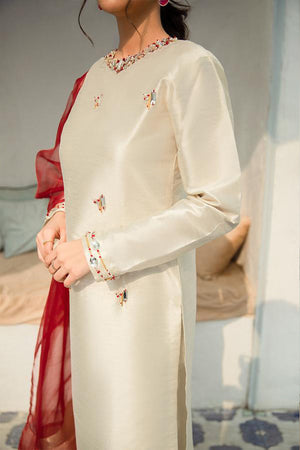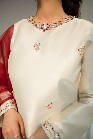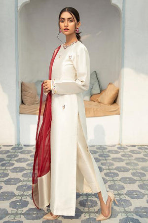 This Majestic! Crispy long tunic features crew neckline mounted with handpicked pearls, stones & Crystals. Paired with straight fitted pants and contrast Dupatta to complete the Royal LOOK!