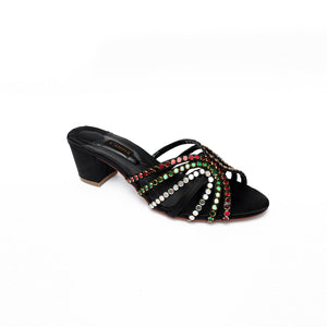 For the timeless and elegant woman, this style will be your closet staple for years to come. Featuring hand-stitched multi-coloured crystals in a scalloped pattern set on a block heel for extra comfort.