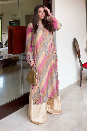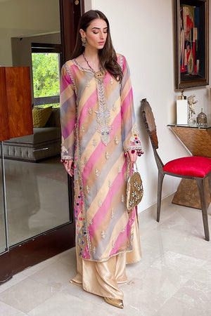 Detailed hand marrori and threadwork on an exquisite printed organza