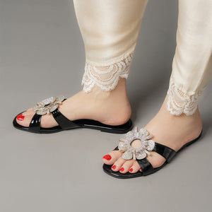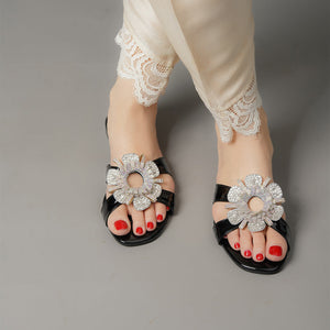 Discover our exquisite ROSA Flats adorned with sparkling crystals...with undulating foot framing straps. These luxurious flats are crafted using leather on the lining and soles, ensuring unparalleled durability.