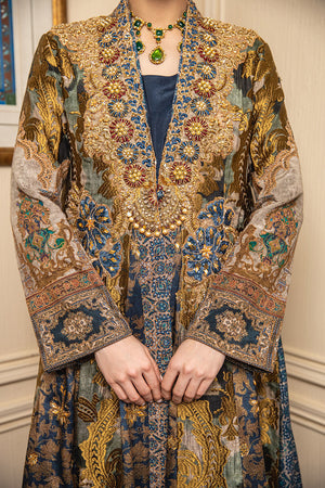 Step into a realm of opulence and majesty with this front open silhouette adorned with an inner inspired by the Ottoman Empire. The regal essence of the empire is beautifully reflected in the intricate details and luxurious fabrics, fully handwork neckline with zardozi, resham, naqshi and essential stones. Creating a harmonious blend of history and contemporary fashion. Embrace the allure of a bygone era while exuding modern sophistication in this captivating ensemble fit for royalty.