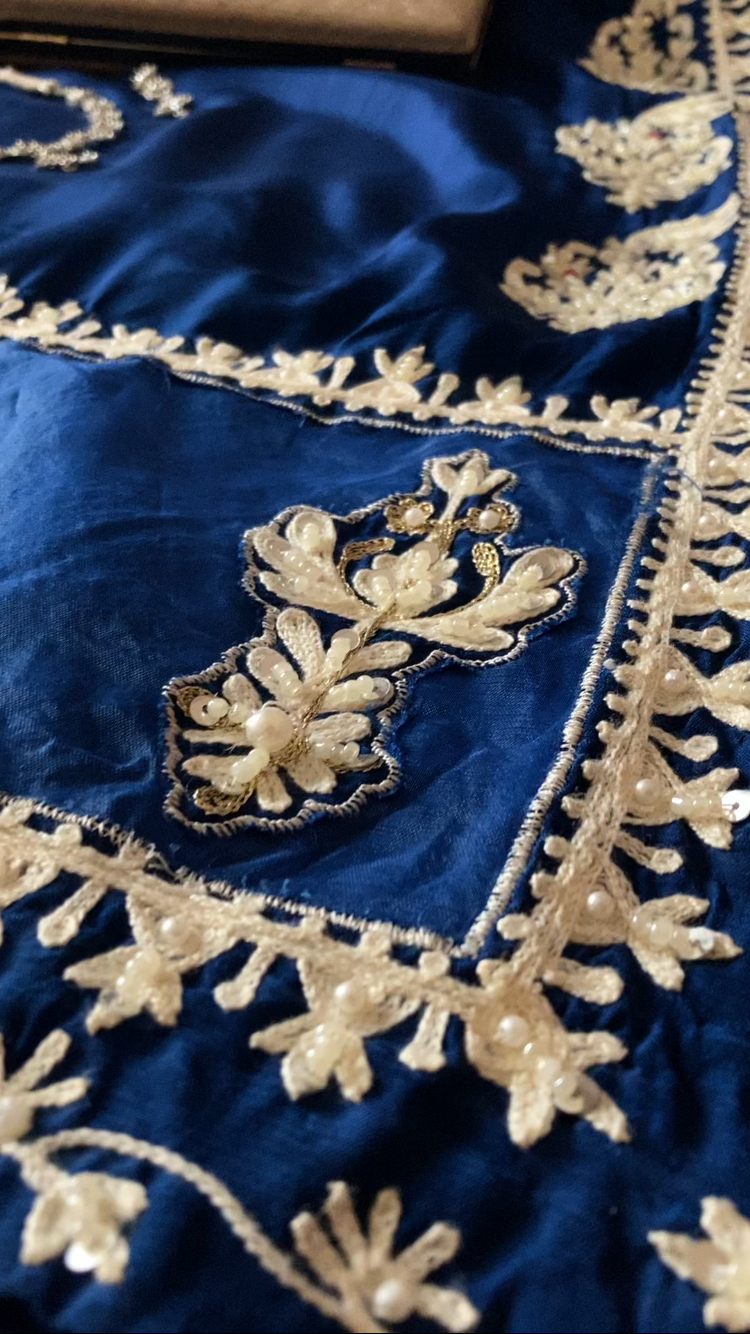 Electric blue russian silk dress with heavy machine AAR work intricated with