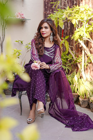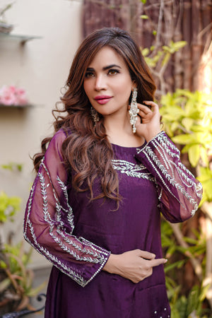 Adorned with meticulous crystal stone and kora handwork, the dress exudes opulence and charm. The front of the shirt dazzles with delicate patterns, intricately woven to perfection, while the sleeves boast a symphony of shimmering crystals, catching the light with every movement.
