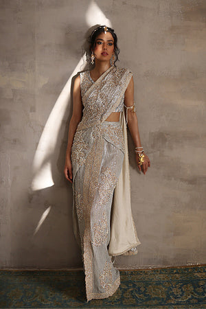 Every motif is a testament to artistry, meticulously crafted with a delicate hand to evoke the timeless allure of pakistani craftsmanship. Enhanced with intricate handwork, the saree resonates with an ethereal beauty that captivates the senses and leaves a lasting impression.