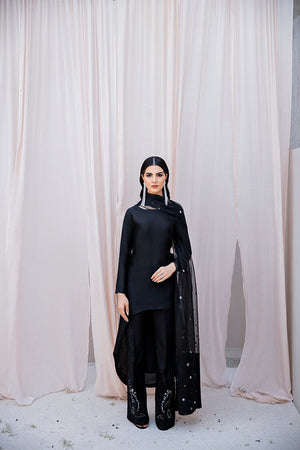 Details: High Low Cut Fitted Shirt In Black Made In Pure Tissue Silk Fabric. It Is Paired