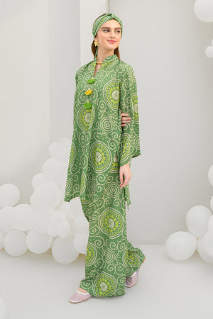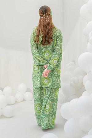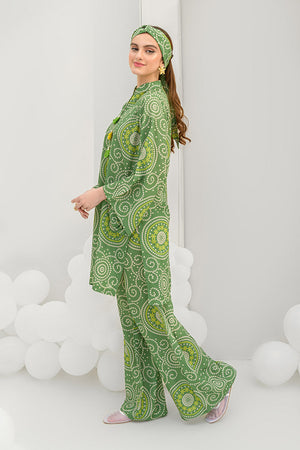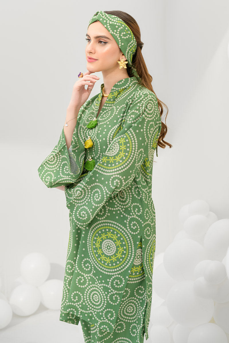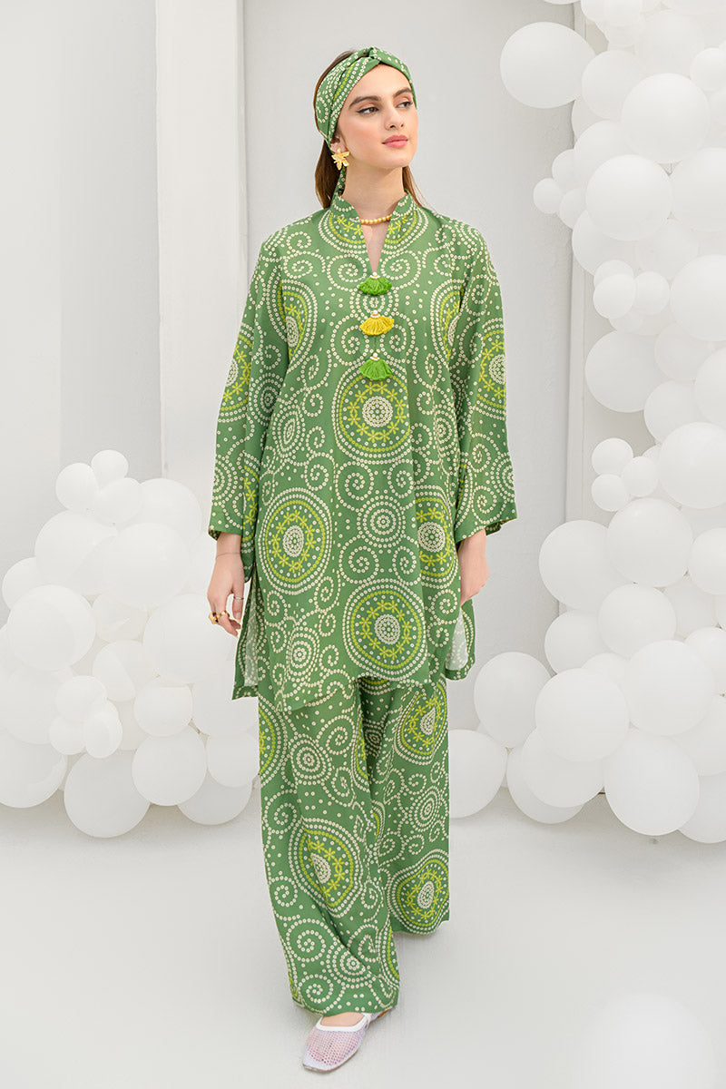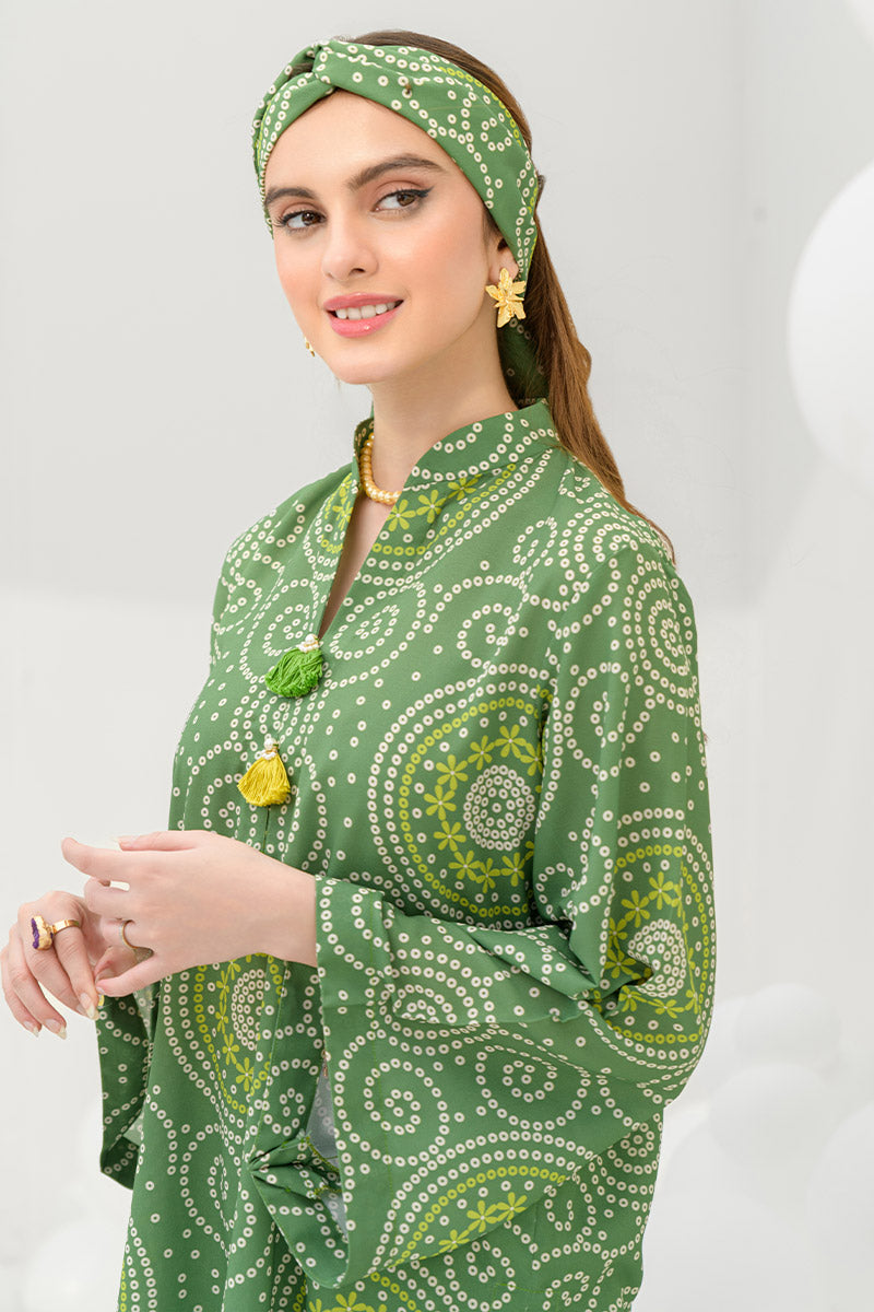 Introducing the Sage Grace co-ord set, designed to radiate earthy sophistication. This beautiful ensemble features a short shirt in a refreshing coriander-green hue, paired with a traditional shalwar, exuding both elegance and ease. Crafted from soft crepe fabric, the set drapes beautifully, providing a comfortable yet stylish look for any occasion. With a shirt length of 35 inches and a shalwar length of 42 inches, the Sage Grace set is perfect for casual outings or semi-formal events, offering a perfect balance of modern chic and timeless tradition.