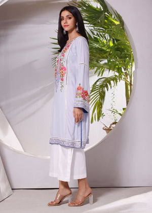 A chic crepe base, adorned in exquisite chikan and hand embroidery