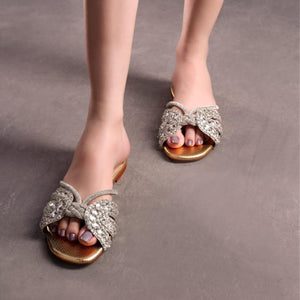Make a statement with our Sasha Flats! Made from durable leather in a T.Gold color, these flats feature dazzling diamontes and pearls in the shape of a butterfly, adding a touch of whimsy and playfulness to your outfit. Whether you're running errands or attending a casual outdoor event, these flats are sure to elevate your style.
