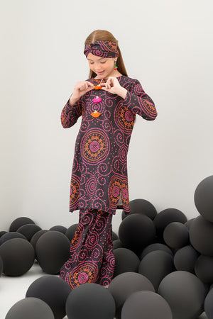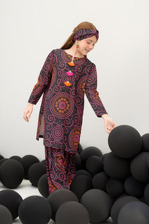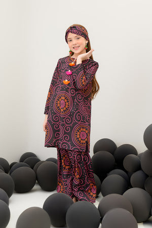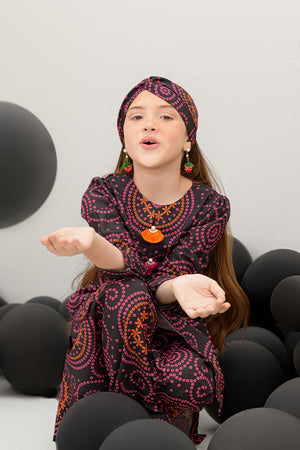 Introducing the Savanna Night co-ord set, a stunning ensemble designed to make a bold statement. Featuring a striking combination of black with vibrant green and orange prints, this set celebrates elegance with a lively twist. It includes a stylish short shirt paired with a traditional shalwar, offering a perfect balance of modern chic and cultural charm. Crafted from soft crepe fabric, the Savanna Night set drapes beautifully, providing all-day comfort without compromising on style. Whether you’re attending an evening event or a festive celebration, this set ensures you stand out with confidence and grace. (Kids' lengths will be according to the size chart.)