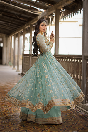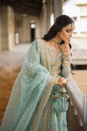 Shahbano pastel intricacies adorning the fabric. Each delicate detail adds a touch of enchantment, making the ensemble a poetic symphony of grace and sophistication. Like a dream brought to life, this ethereal dress captivates with its whimsical allure and timeless elegance.