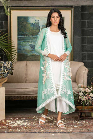 Sia is a fusion of two worlds combined in one. Made with soft-textured organza. Asymmetric in length and draped with hemline silk slip. The dress has silk thread embroidery work embedded on it with pearl shells to enhance your beauty even more. You can even pair it with culottes. (Includes Pants)Collection: KIARA EID'21