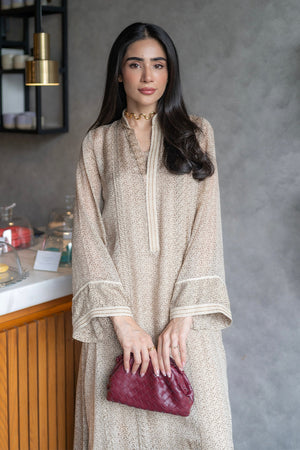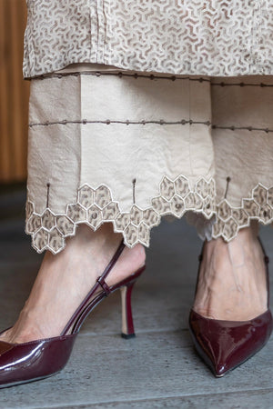 Our beige Siara is a seasonal essential, showcasing an all-over print with subtle accents, pleats and exquisite trouser detailing. Versatile and chic, it's perfect for summer's varied occasions.