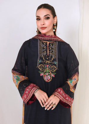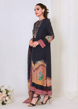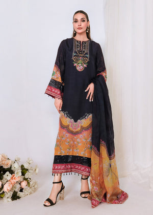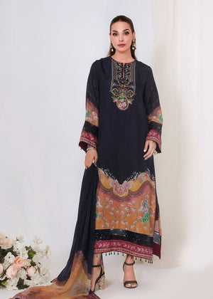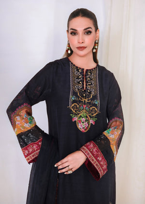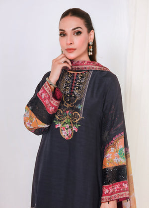 Elevate your wardrobe with Siren, the black embroidered ensemble that's perfect for any special occasion. Experience the luxury of Korean silk and the elegance of detailed embroidery and embellishments. Shop now and make a statement with this stunning piece from Reema Ahsan Bridal Lounge!