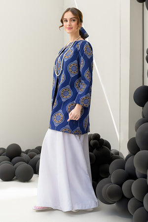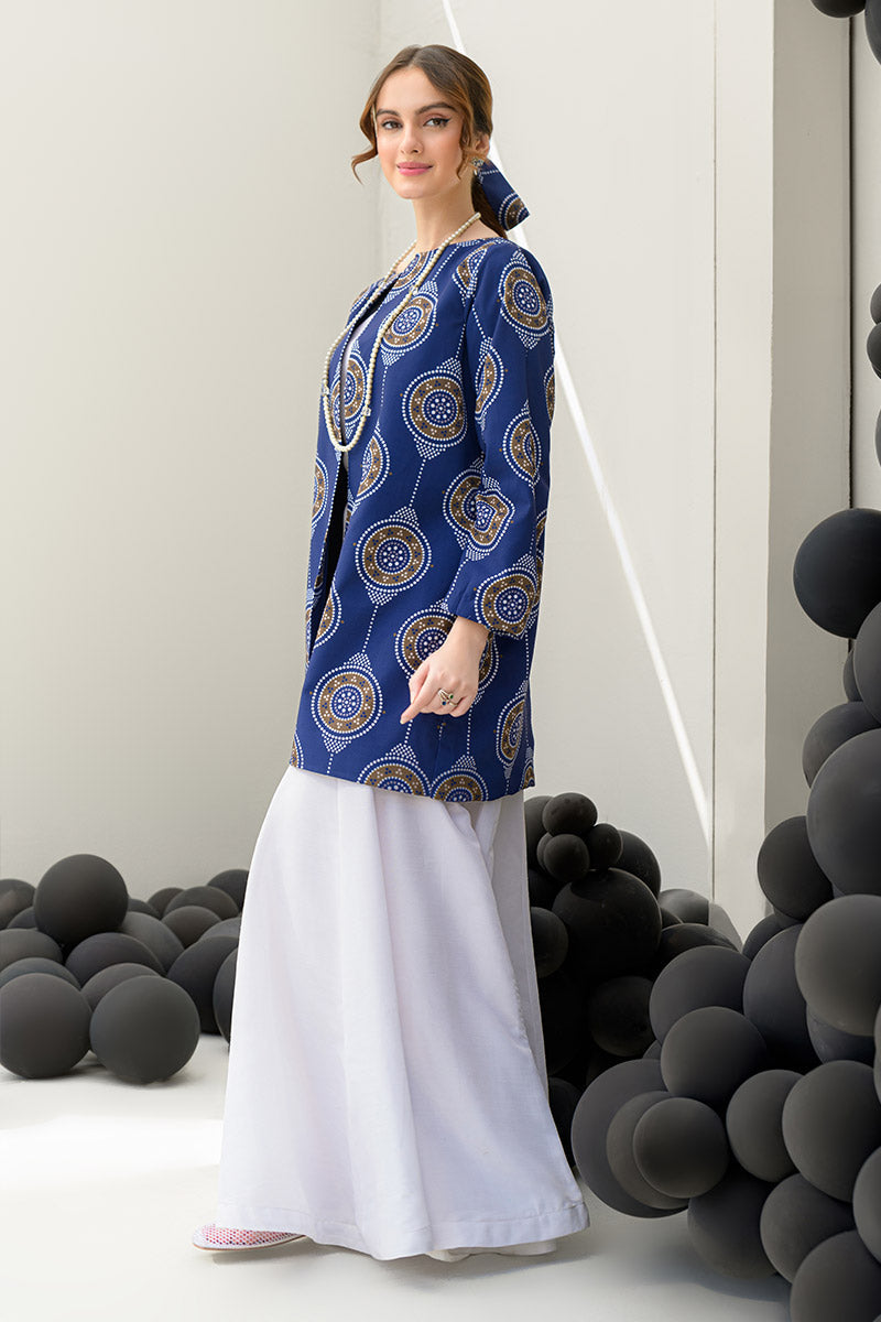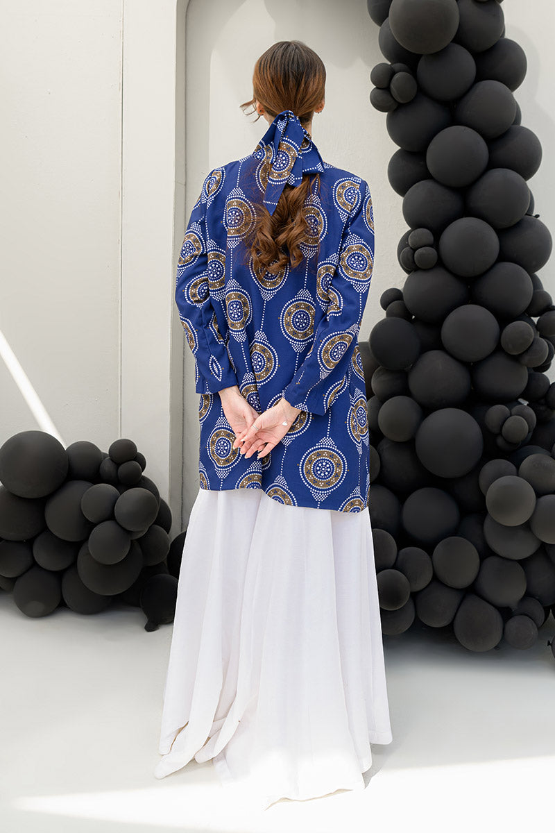 Introducing the Snowy Navy 3-piece set, designed to embrace winter elegance while making a bold yet refined statement. This stunning ensemble features a sophisticated jacket, an inner top, and flared pants in a deep navy blue that exudes both warmth and style. Crafted from soft crepe fabric, the jacket provides a structured, chic silhouette, while the flared pants add a touch of vintage glamour. The jacket measures 32 inches in length, while the trousers are 42 inches long, ensuring a perfect fit. Ideal for cool evenings or upscale gatherings, this set effortlessly blends comfort with sophistication for the modern woman.