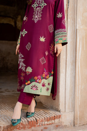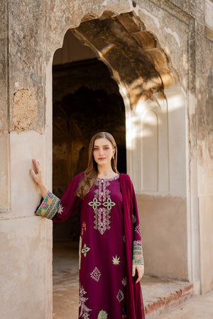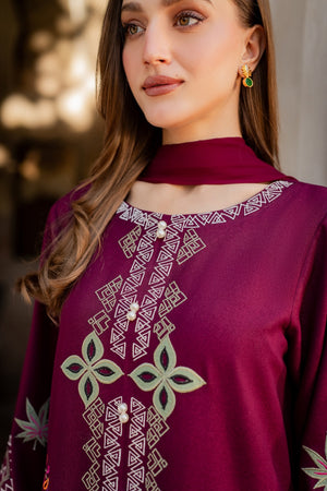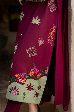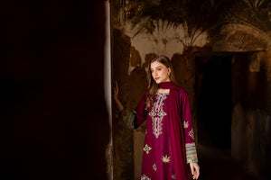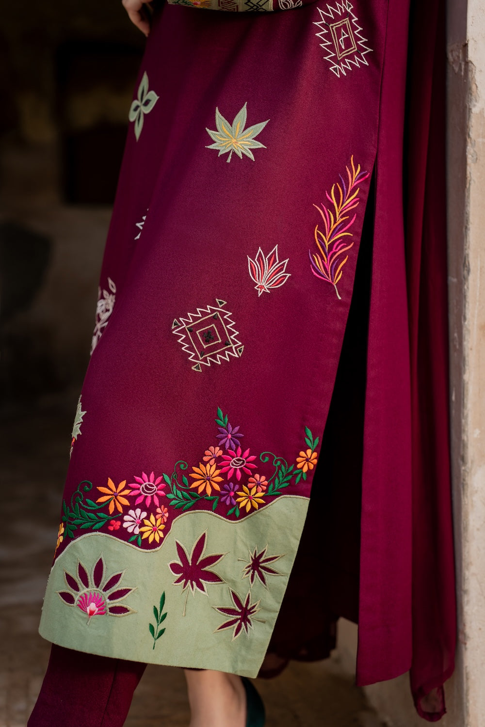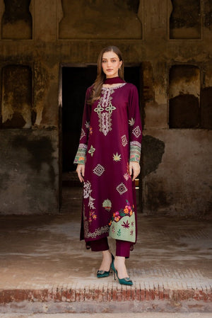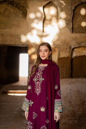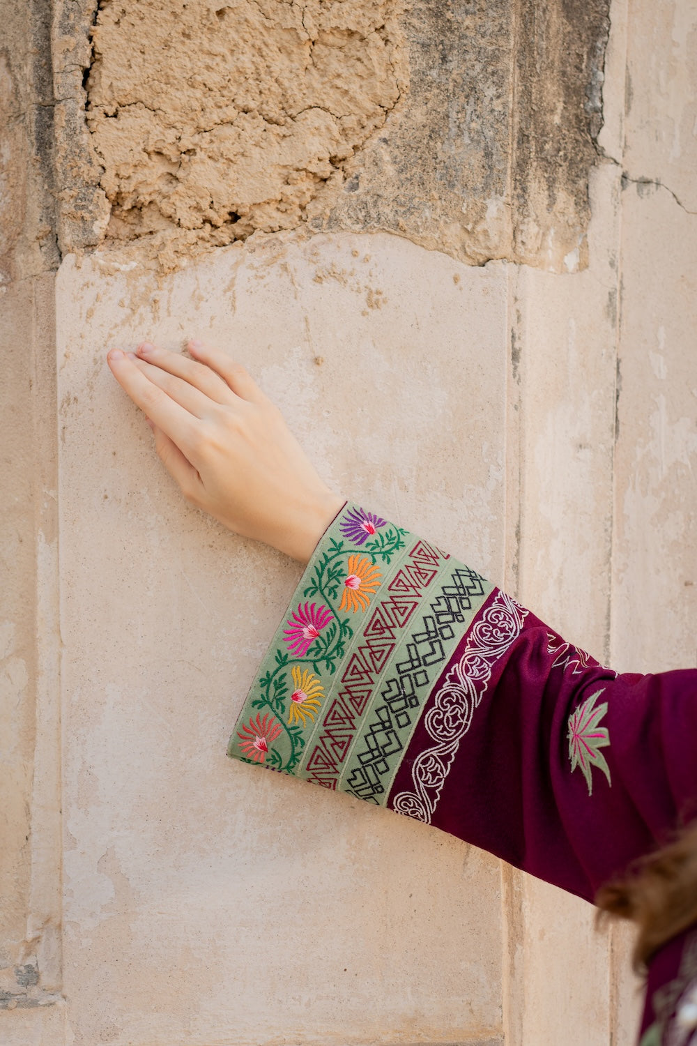 This winter, make a bold statement with a striking magenta outfit that’s lifted by a fresh mint‑green color block, creating a dynamic yet sophisticated contrast. The design is enriched with scattered geometric embroidery, while an intricately crafted neckline adds a touch of refined detail. Together, these elements transform the piece into a versatile must‑have—perfect for festive gatherings, office celebrations, or an elegant evening out. Its balanced blend of color, texture, and subtle embellishment ensures that it stands out .