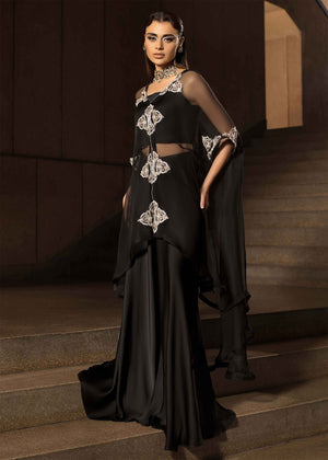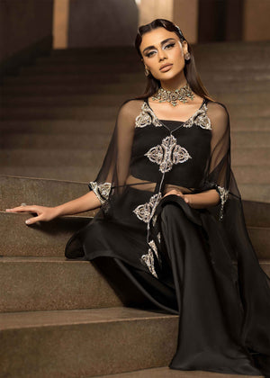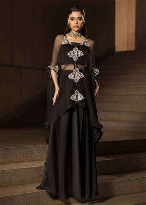 The Spark cape, crafted from sheer organza and adorned with intricate hand-embroidery in zardozi, is a stunning piece that seamlessly transitions between effortless glamour and extravagant elegance. The light, airy texture of the organza contrasts beautifully with the luxurious, metallic threads of zardozi, creating a visual masterpiece. Whether draped casually over a simple outfit or worn to elevate a more formal ensemble, the cape’s detailed craftsmanship adds a touch of opulence and sophistication. Its versatility makes it perfect for any occasion, whether you're aiming for understated elegance or bold, extravagant style.