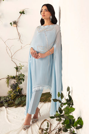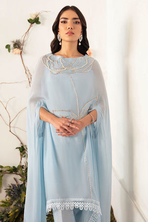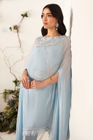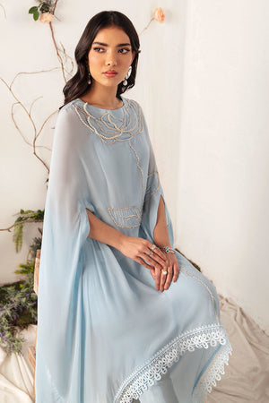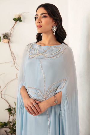 The Ice Blue Cape is a trendy and elegant piece that captivates with its captivating rose design on the front. The intricate handwork is enhanced with pearl sesoskis and sequins, adding a touch of glamour to this stylish cape in a soothing ice blue shade.The Center length is 35-40 Inches