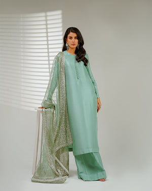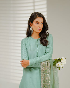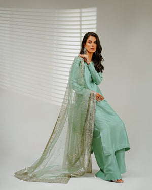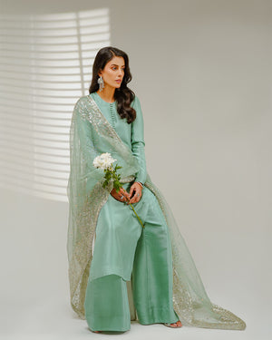 A mesmerizing turnout featuring a plain shirt paired with a dupatta that shines with hammered details. this celestial-inspired outfit twinkles like the night sky, with every thread and hammer stroke meticulously crafted to evoke the magic of the stars.