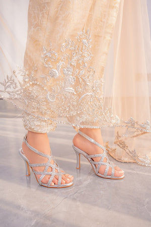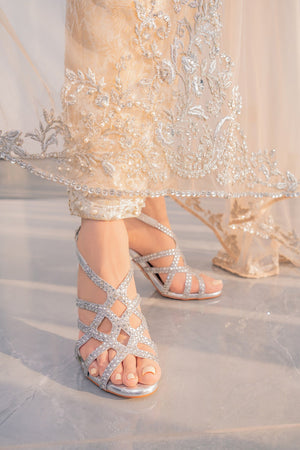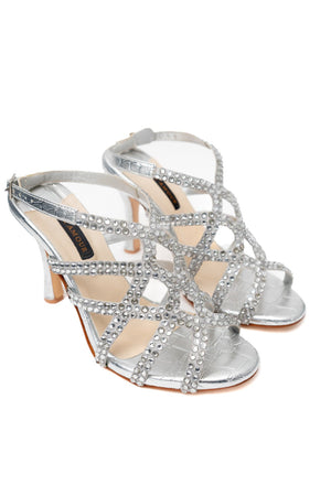This heavily embellished strass studded pair boasts laser cut details that are intricately embellished with micro-crystals that create a criss-cross pattern. The leather adds extra comfort & cushioning while the high-shine allows you to make the ultimate statement.