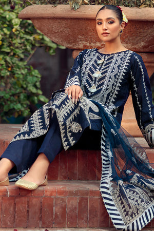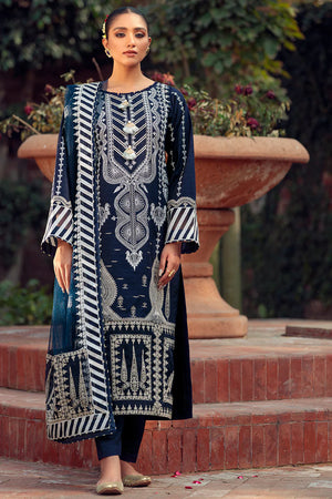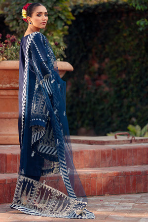 A sophisticated ethereal 'Sumbal' is a fully embroidered suit, delicately embellished with white and beige , creating a spectacular contrast. Paired it with the embroidery poly net dupatta which give you the most royal look ever.