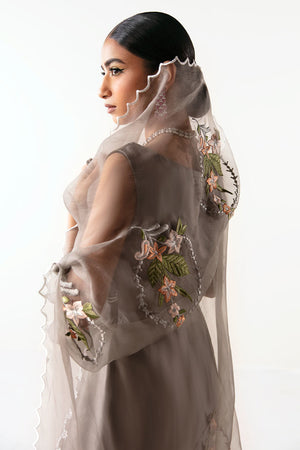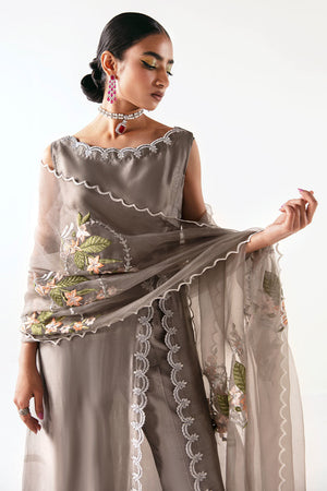 Draped in Gray Glamour: Introducing 'Swish', where elegance meets edge. Enchant in our embroidered tissue silk bodice cut shirt with a side-long slit, complemented by a fully adorned organza dupatta and refined Thai silk bootcut pants. A flawless choice promising grace and sophistication.The shipping charges for all articles barring Bridals are as follows: