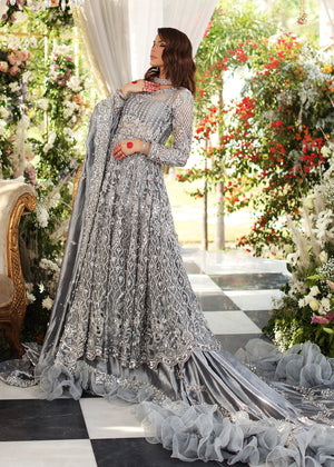 This mesmerizing ensemble with its celestial hues creates a never-befor-seen look. Meticulously handcrafted with extravagant pearls Swarovski embellishment. This statement look is completed with an elegant trail Lehngha Dupatta with scallop border