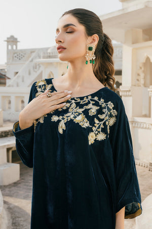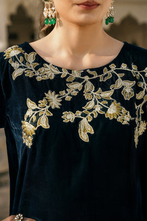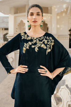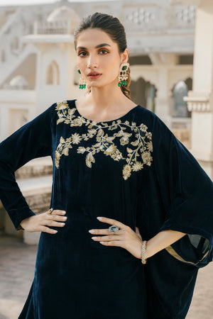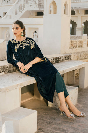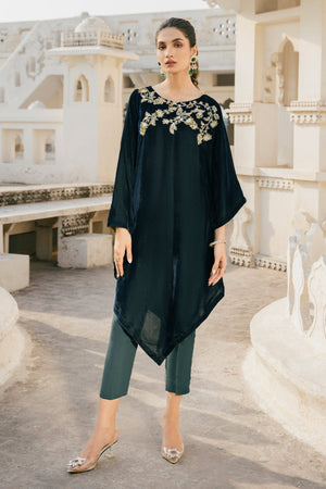 A beautiful embroidered cape-style shirt in teal hues, combined with raw-silk pants, will give you a stylish and sophisticated look. The intricate detailing of the shirt ensures that you will make a memorable statement.