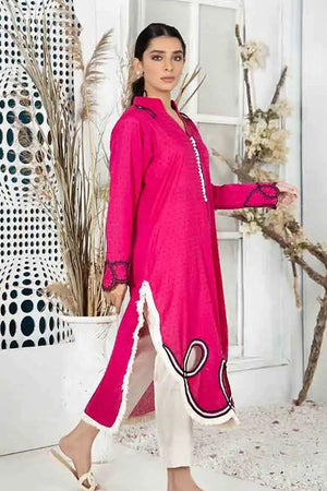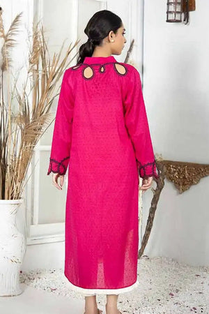 A beautifully structured straight long dress with tapered sleeves, embezzled with dori cutwork hemline.