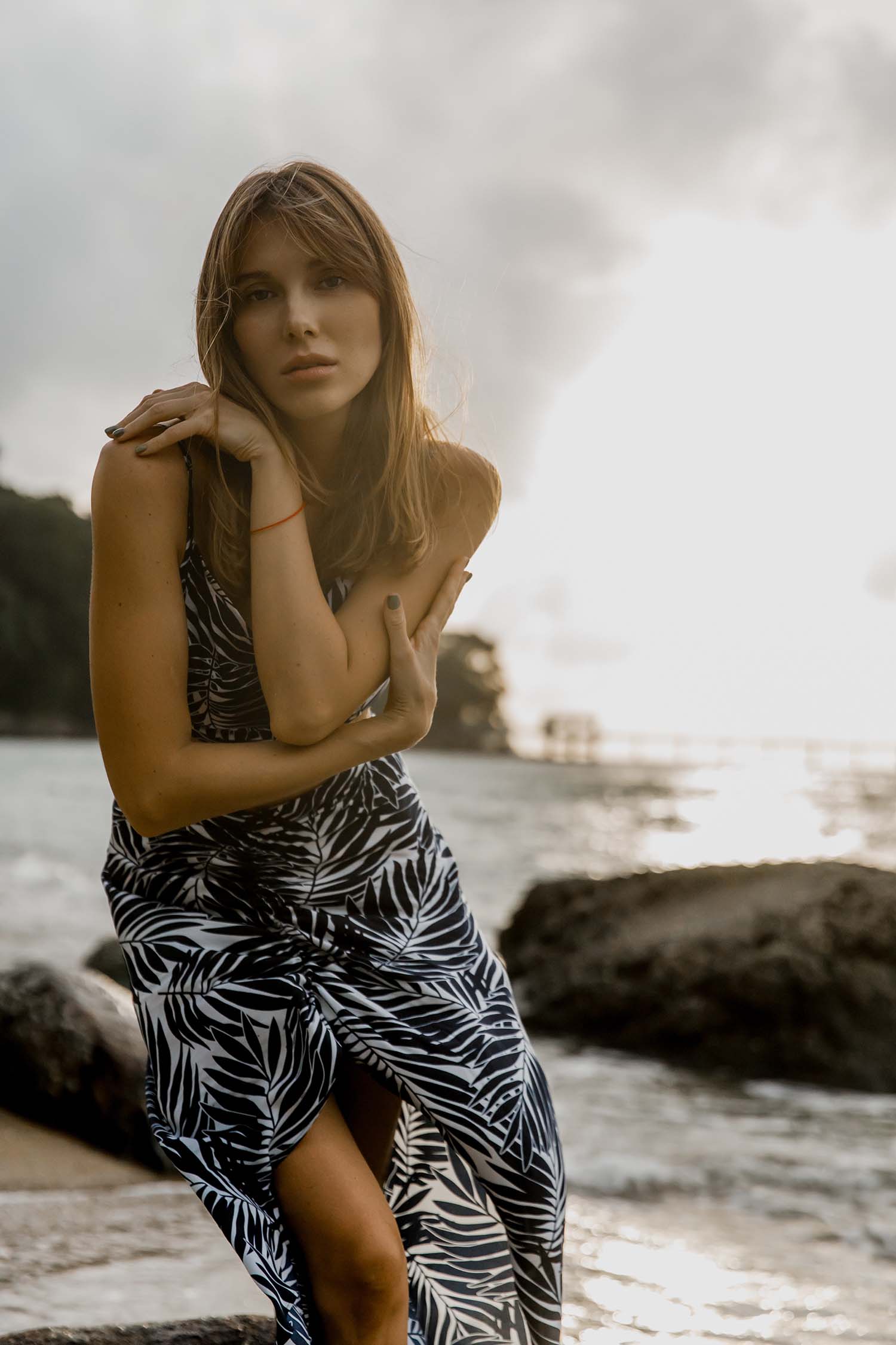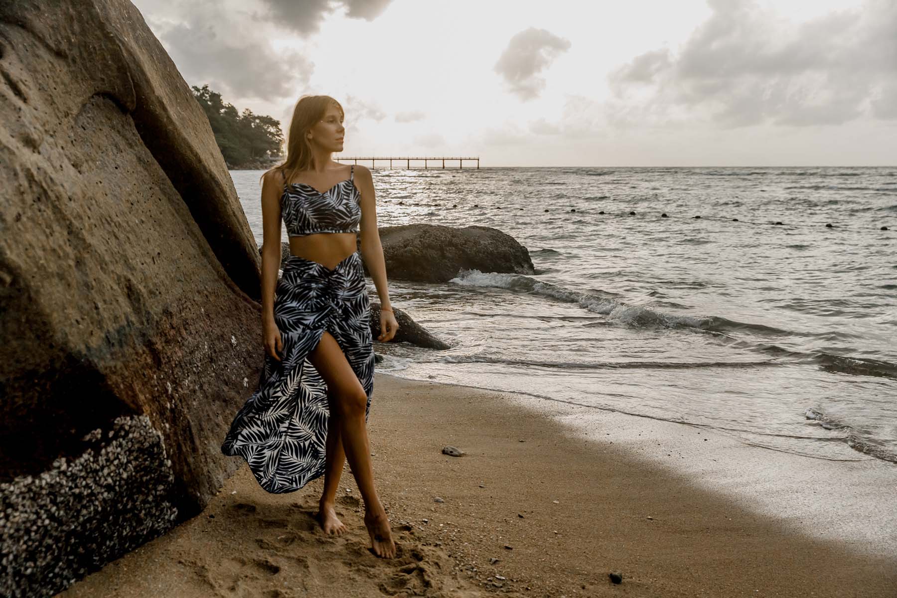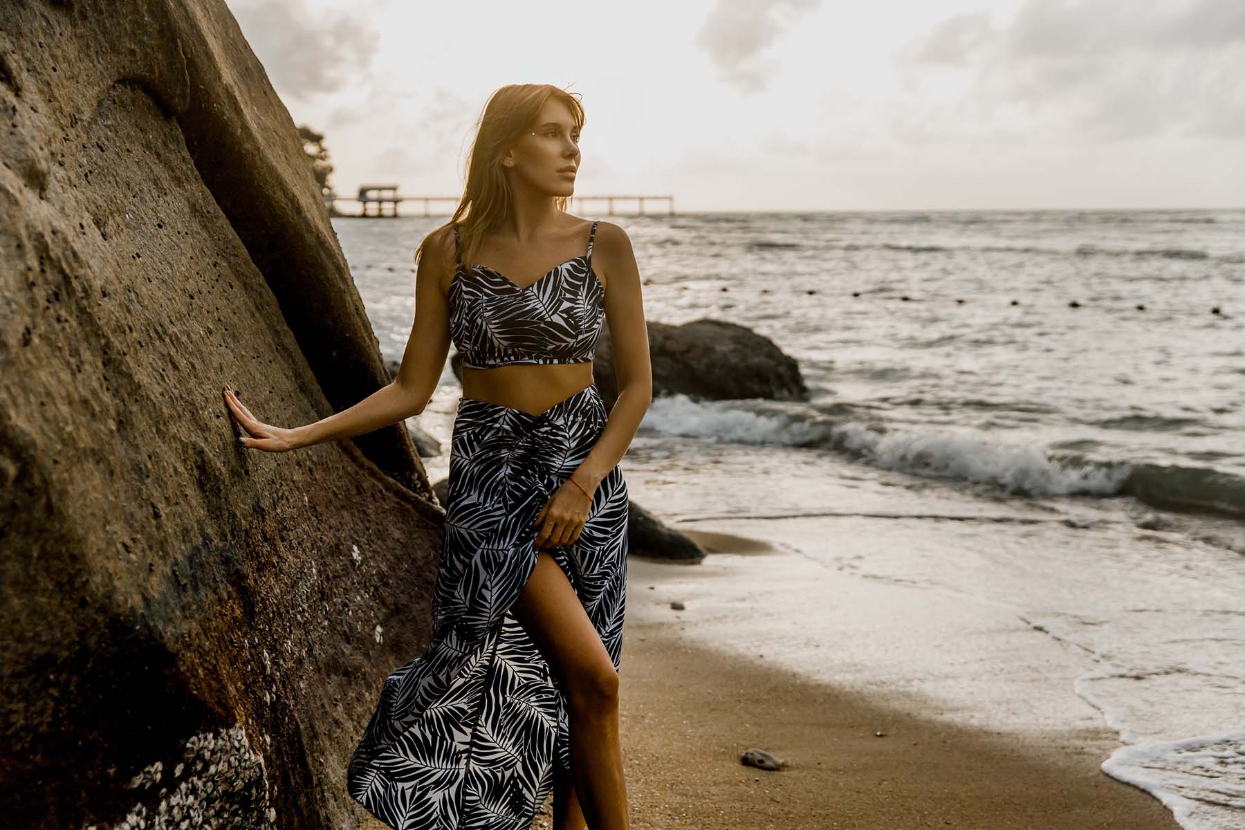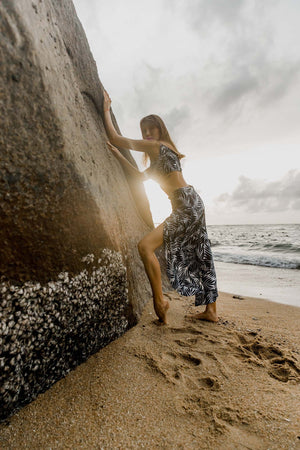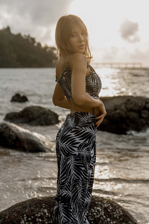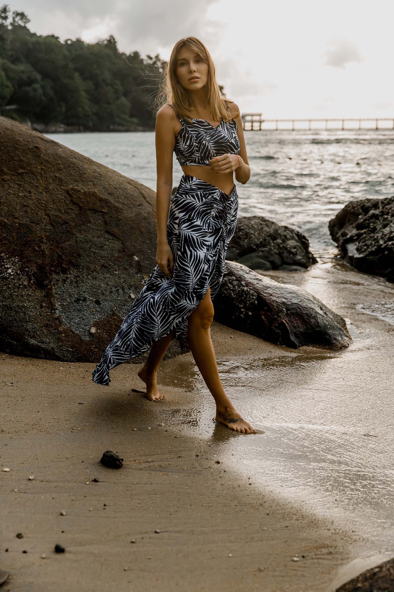 Transport yourself to an exotic paradise with our Tropical Tease two-piece set! This captivating ensemble features a mini camisole and a half-open front skirt, adorned with a mesmerizing print of blue and white leaves. Embrace the allure of the tropics and let your wild side roam free as you step out in style. Perfect for beach parties, summer soirees, or any occasion that calls for a touch of sensuality and elegance. Unleash your inner enchantress and make heads turn with this irresistible combination of tropical charm and chic design!
