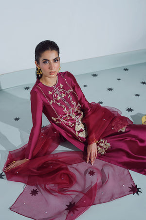 Introducing the enticing 'Vanity' ensemble. Prepare to be fascinated by the alluring appeal of this exciting combo, featuring the gorgeous Falsa shade. It exudes stunning grandeur, carefully made from a shiny tissue silk and organza conjunction. The well-crafted shirt oozes timeless style, while the slim cigarette trousers lend a hint of modern charm.