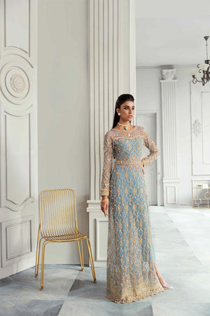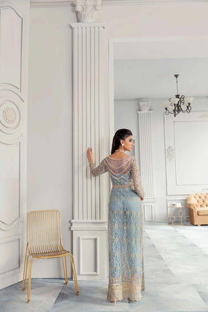 It’s a 3 piece stitched outfit including shirt, slip and pants. Shirt has heavy emblished jeweled neckline with fully embellished front and back. It is paired with cigarette pants with side finishing of gold.Fabric: Shirt: Net