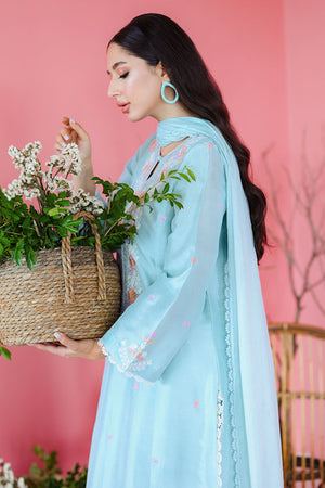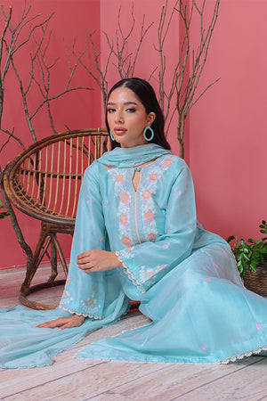 A blue radiance pure raw silk kurta features ari embroidery with an intricate, heavy neckline and hovering floral motifs. Complimented with our silk dupatta with lace finishing and straight pants with organza detailing for an effortlessly chic look.