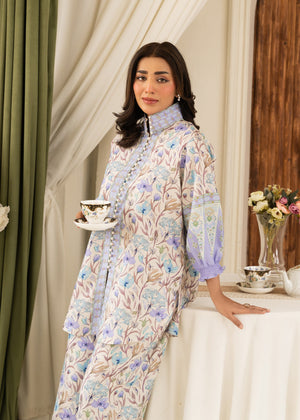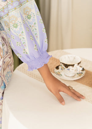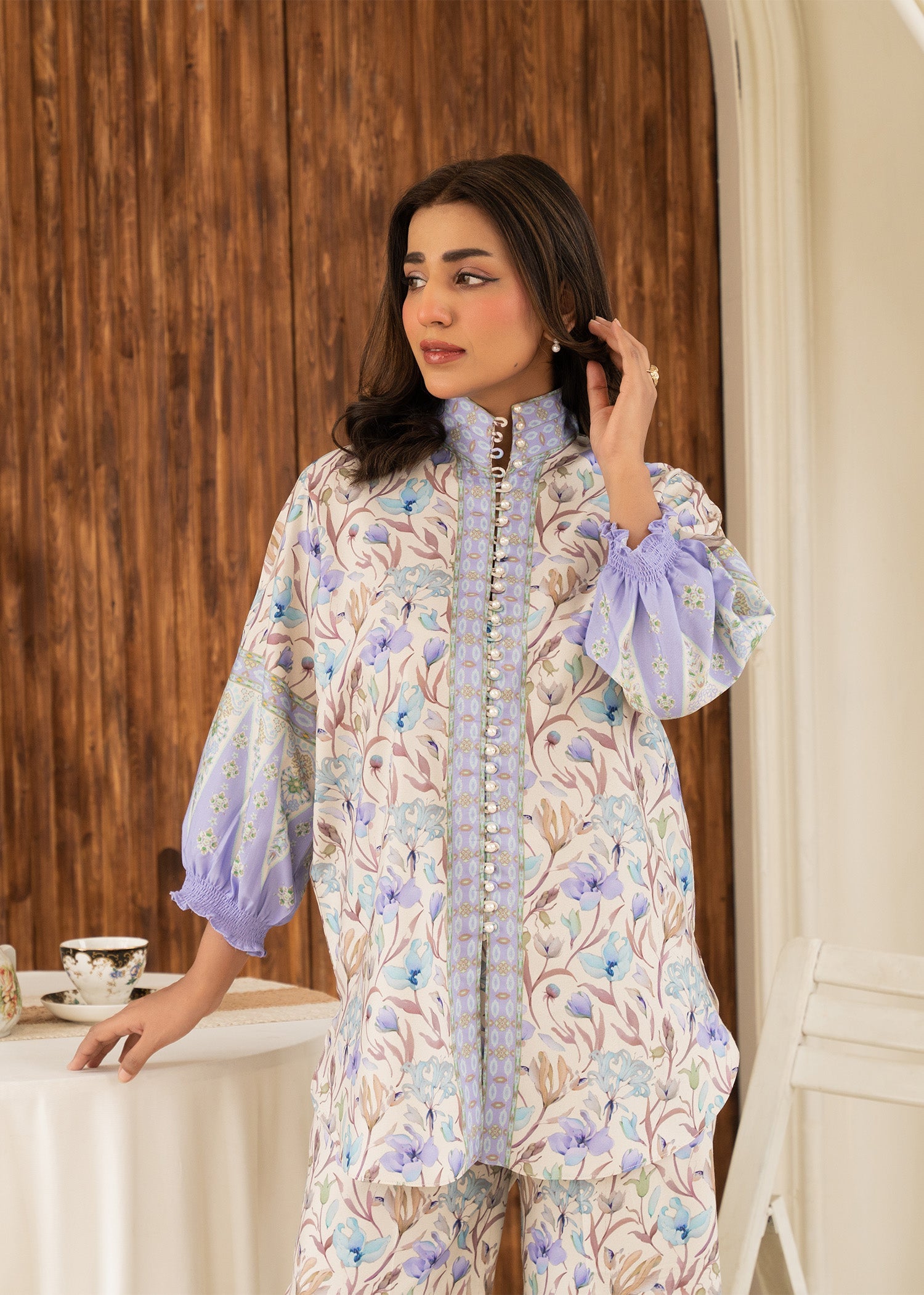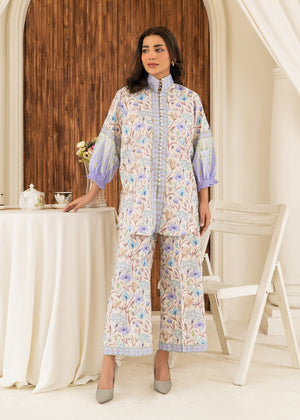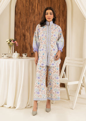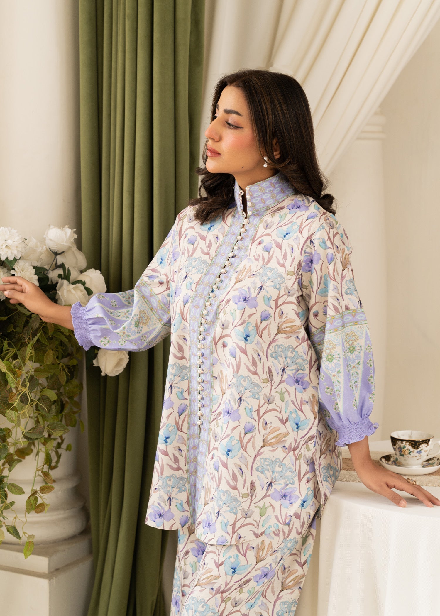 Elevate your style with this stunning printed set with a touch of delicate sophistication. Pearl and loop details all the way down from neckline creating a graceful, polished look. An outfit not to miss this summer season.