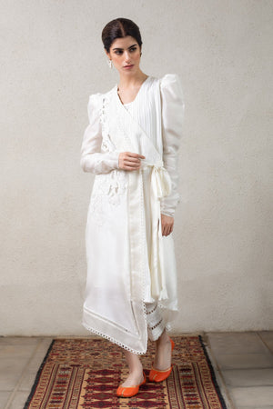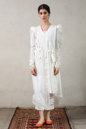 100% pure raw silk and organza partially combined in this articleColor: Fresh White