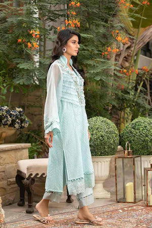 Xhevahir is an eccentric design of Kiara’s collection, the design aims to replicate the meaning behind the word and bring forth the hidden jewel from within you. Crafted from schiffli and textured organza, cladded with pearls and jewels and embroidered hemline. The dress is a precious one of a kind head-turning, bold statement that is all about you.Collection: KIARA EID'21
