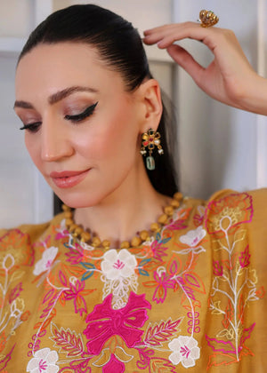 Description: Exuding elegance and showcasing masterful artistry, this outfit embodies the essence of intricate embroidery patterns. With vibrant colors that come to life, it stands as a bold celebration of refined style.