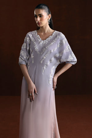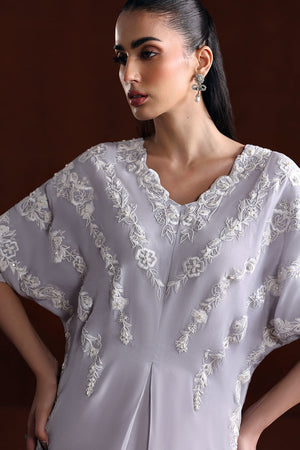A stunning fusion of grey and peach in pure grip fabric, this kaftan offers effortless elegance and comfort—perfect for both casual chic and festive flair.