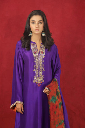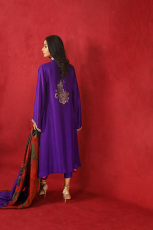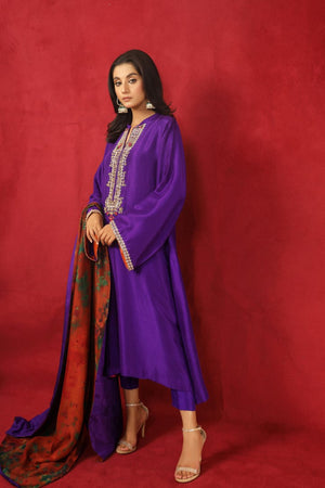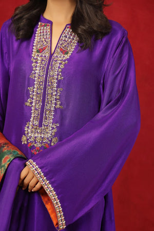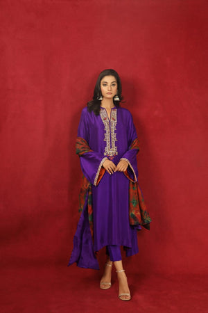 Detailed work of nakshi, kora, dabka, sequin and Pearl on raw silk kurta set. Medium silk dyed duppata