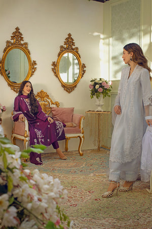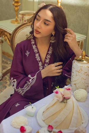 Raw silk shirt with linear floral embroidery on the shirt. Comes with an embroidered medium silk dupatta and straight raw silk pants.