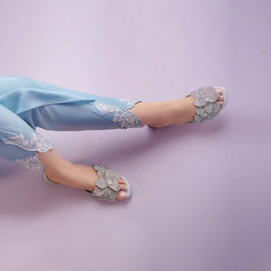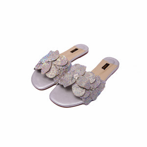 These exquisite Flats, crafted from metallic leather, are designed to captivate both the eye and the imagination. Embellished with sparkling 3D Flowers, this eye-catching slip-on is the ideal companion for your summer celebrations.
