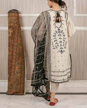 Monochrome boxed silk blend voil kurta’s with black embroidery paired with black organza dupattas – lining included