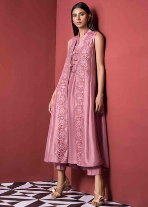 Description: Zeynep is an unconventional take on the classical dresses of the east, presented in the beautiful rouge pink, the dress is assembled in raw silk with box pleated embellishments.