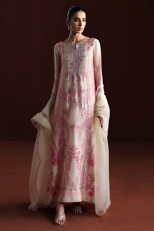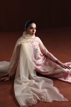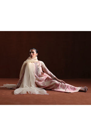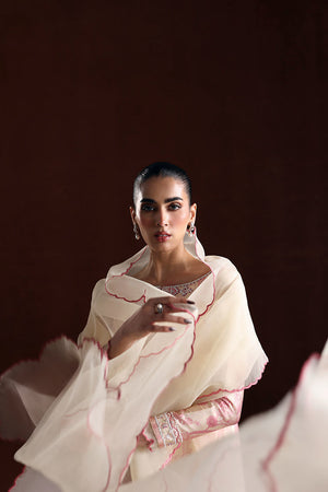 A refined look featuring a Shesha silk shirt paired with a soft pink Organza dupatta. Perfect for adding a touch of charm to any occasion.
