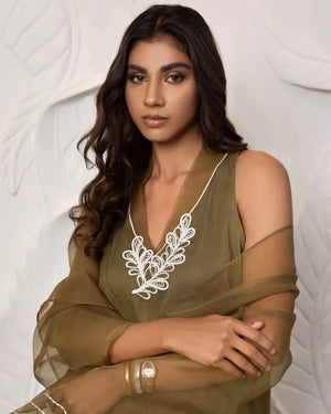 Sleek cut pure cotton shirt with an embroidered neck and hemline