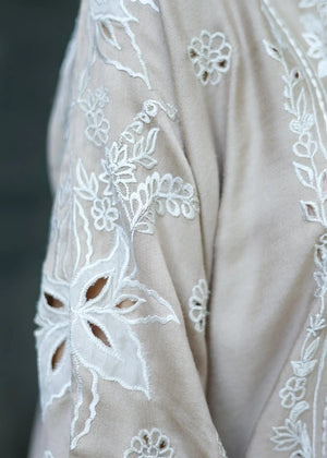 Description: Embrace the summer with this airy garment, woven from lightweight thread fabric. Intricate embroidery, cutwork details, and scalloped edges ensure you feel joyful and radiant as you wear it.