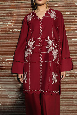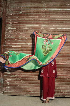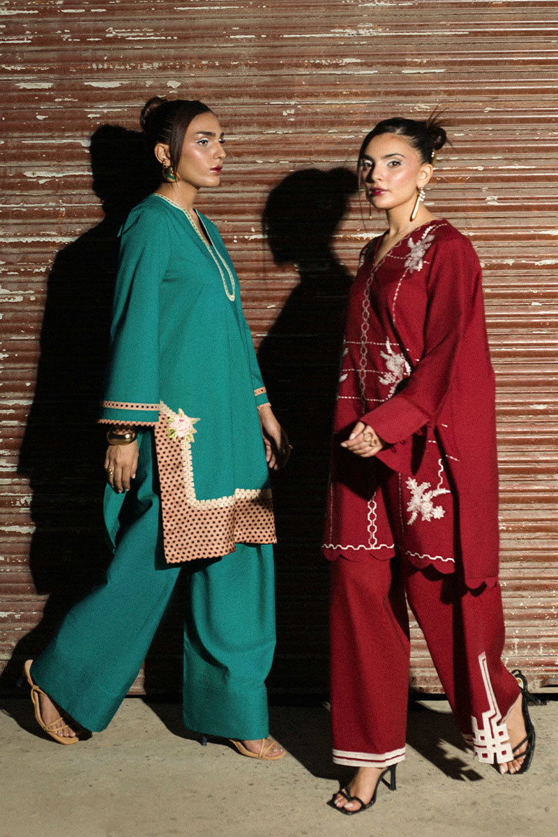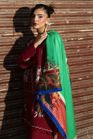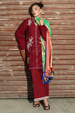 Description: Elevate your wardrobe with this 3-piece red ensemble featuring an embroidered lawn cotton shirt, matching trousers with geometric motifs, and a printed silk dupatta. Stylish details like a V-neck, scalloped hemline, and lace-trimmed cuffs add timeless charm to this elegant outfit.